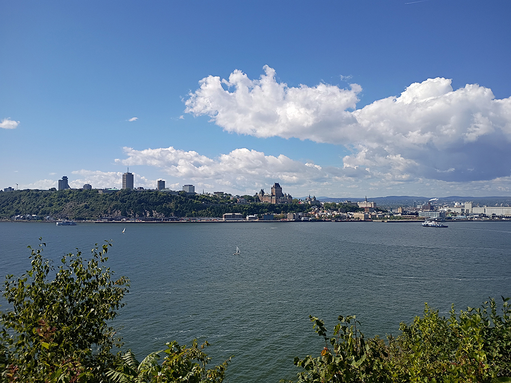 Eine majestätische Landschaft erwartet sie: Der Sankt-Lorenz-Strom, die Insel d’Orléans und die Laurentides erfreuen ihre Augen und erheben ihre Seelen zur Betrachtung